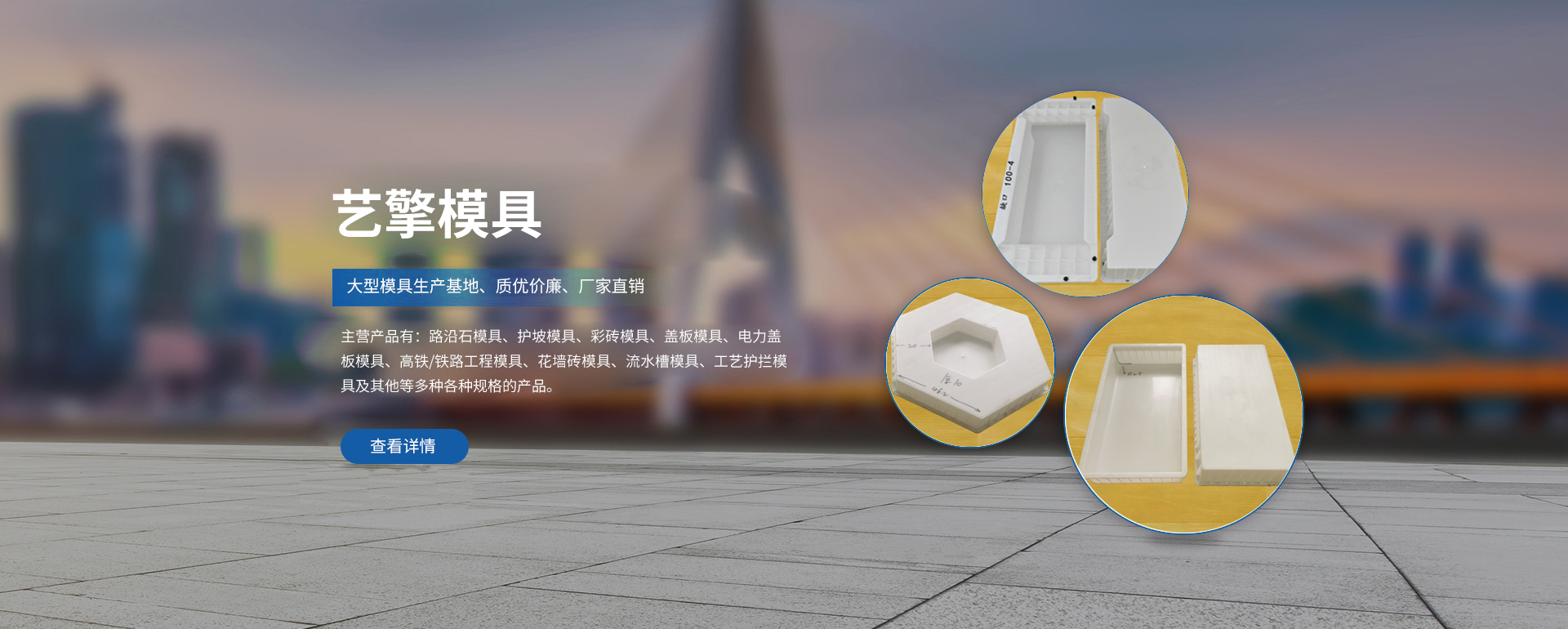 保定藝擎模具開發有限公司位于經濟高速發展的河北古城——保定,地處京、津、石三角地帶,交通便利。公司創建于2002年近期股份變更,手續更新, 藝擎模具開發有限公司擁有自己的研發技術人員,是保定一家能自主開發鋼模具以及塑料模具的大型企業,鋼模具和塑料模具等均可生產可定制,可選型號。藝擎模具開發有限公司主營產品有:路沿石模具、護坡模具、彩磚模具、蓋板模具、電力蓋板模具、高鐵/鐵路工程模具、花墻磚模具、流水槽模具、工藝護攔模具及其他等多種各種規格的產品。 藝擎模具開發有限公司創業多年來,致力于市政工程、路政工程、高鐵路基、橋梁護欄、河道護坡、新型建材等領域的砼制品塑模及配套設備的研發、制造、銷售與服務。藝擎模具開發有限公司堅持“以科技為動力、以質量為基石,追求更高品質,持續不斷改進,超越客戶期望,打造藝擎模具品牌”的方針。在激烈的市場競爭中換位思考,敢于承擔責任。藝擎模具開發有限公司以產品質量優異化、成本合理化、客戶投入低小化為企業經營理念。廣交朋友,喜結善緣。得到了廣大客戶的一致認可和好評,真誠歡迎四海賓朋來司參觀指導。歡迎您隨時垂電咨詢:王經理19933551111...
